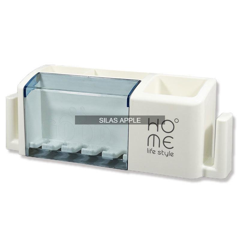 Giá cắm bàn chải, kem đánh răng có úp được 2 cốc dán tường không cần khoan đục lỗ